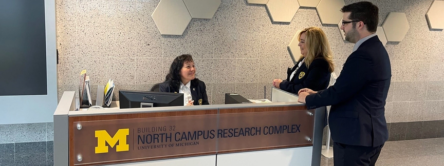 Guest Services specialists are located at the visitor entrance of our Duderstadt Center to provide a safe and secure environment for staff and visitors.